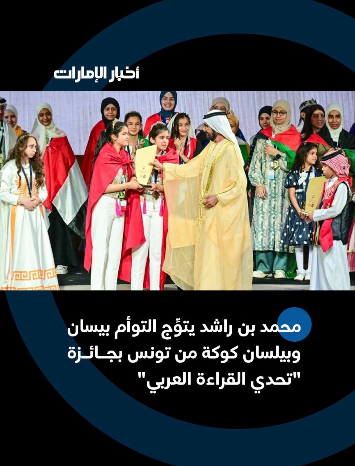 فاز التوأم التونسي بيسان وبيلسان بجائزة تحدي القراءة العربي، في دورته التاسعة خلال الحفل الختامي الذي أقيم اليوم الخميس في مركز دبي التجاري العالمي.